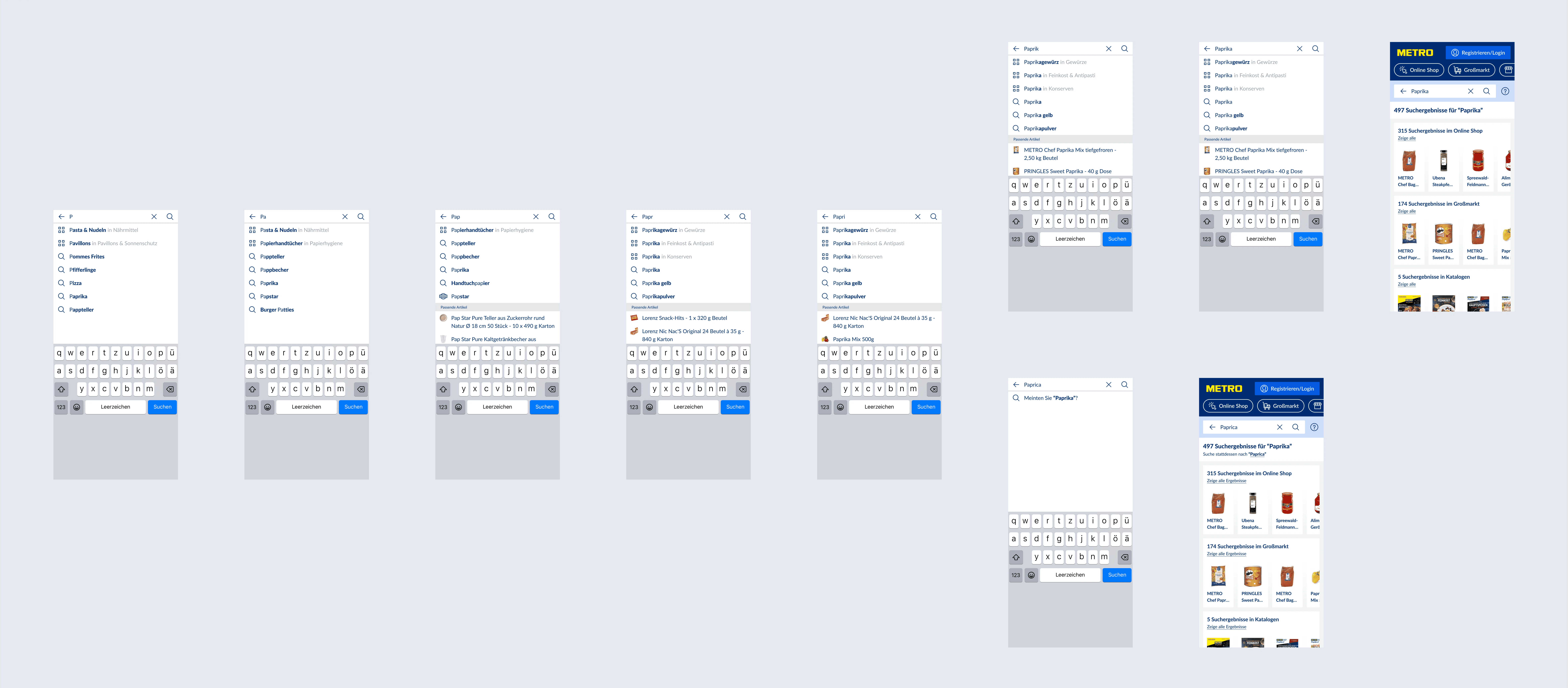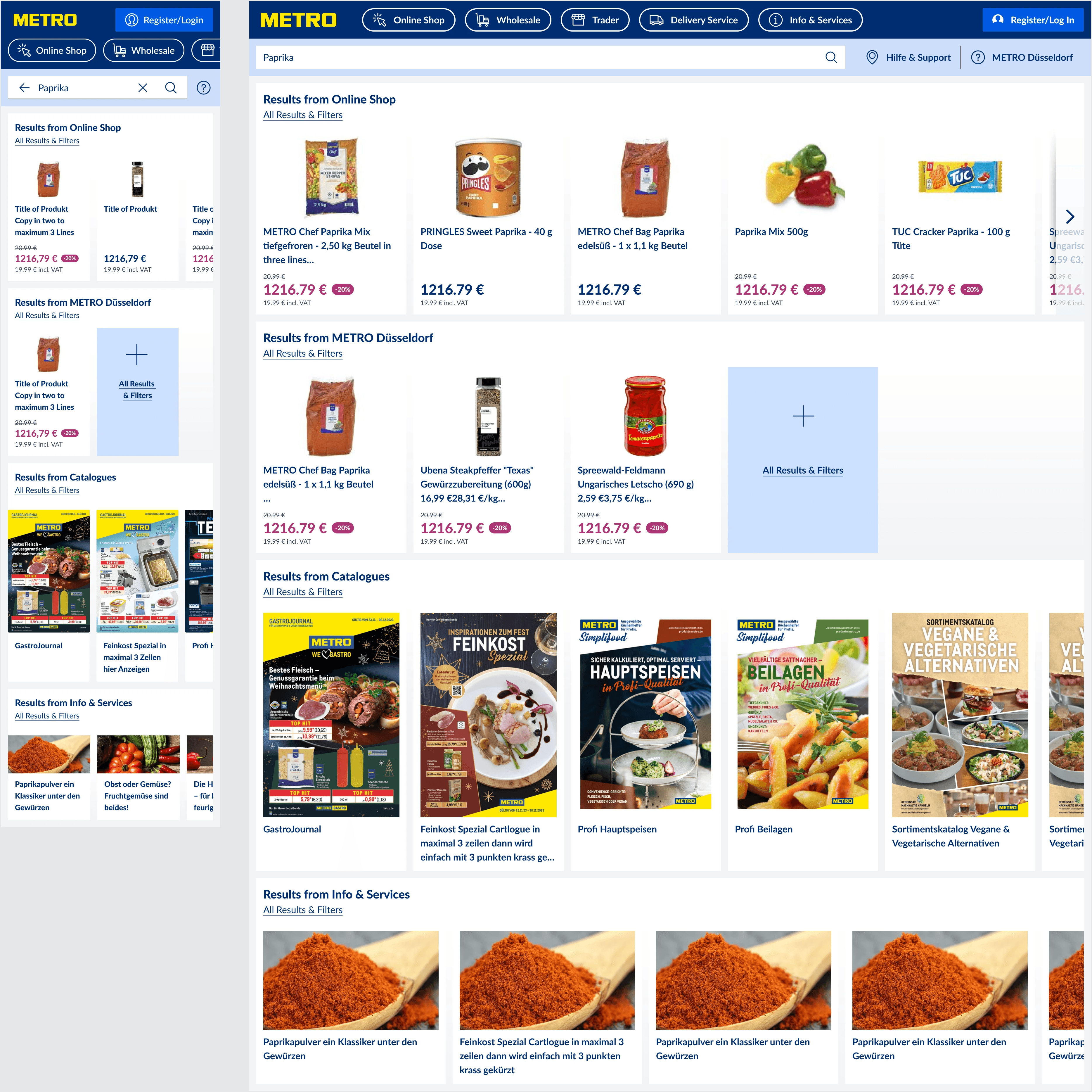 We analyzed search behavior, developed prototypes, and tested a new unified search experience that automatically categorizes results. A/B testing compared the manual bucket selection with the new multi-channel search, guiding users seamlessly across Metro Market, M.Shop, and Info Services.
